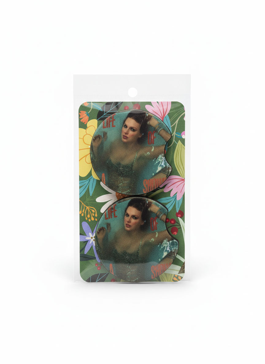 Step into the spotlight every time you drive with these Life of a Show Girl inspired car coasters, a shimmering nod to Taylor’s cinematic elegance and vintage allure. Featuring a dreamy, high-fashion portrait and soft retro tones, this set transforms your cup holders into a stage of sophistication.
