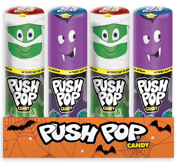 Trick-or-treat your way to a tasty time with Halloween Push Pops! These classic lollipops come in spooky seasonal packaging, featuring fun Halloween characters like ghosts, pumpkins, and monsters. With bold fruity flavors and a fun push-up design, they’re a hands-free, mess-free way to enjoy a sweet treat on the go.