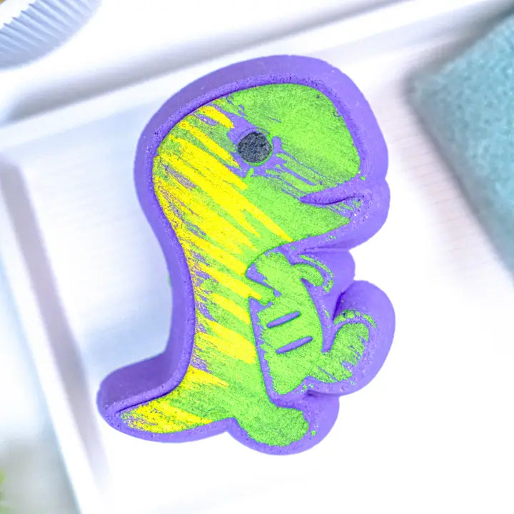 Dig into these bath Dinosaur bath bombs that bubble and froth with color, exploding with fragrance until a surprise dinosaur is revealed!